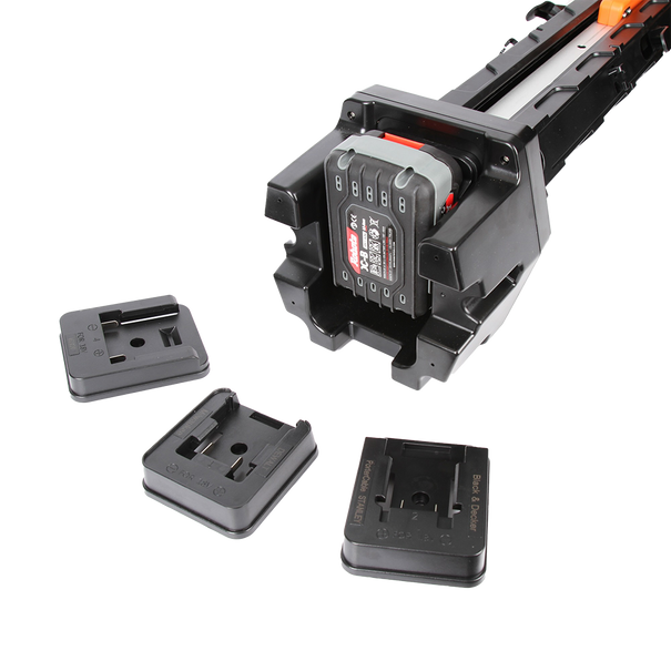 Multi Battery Compatibility: Includes adapters for: • Robota • Makita • DeWalt • Bosch • Milwaukee (batteries not included)